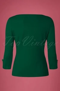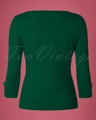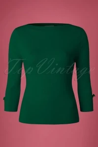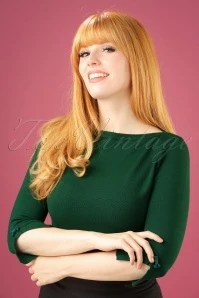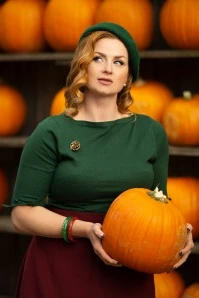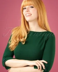 Elegant and cute this 50s Addicted Sweater in Forest Green! Simple and yet so elegant due to the adorable detailing! The top features a beautiful slash neckline and flattering 3/4 sleeves finished off with slits and little fixed bows, só cute! Made from a lovely supple, stretchy dark green viscose blend that will keep its shape, even after a few washes. A versatile classy top which can’t be missed in every vintage lady’s wardrobe, the name says it all; we’re addicted!