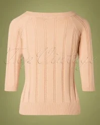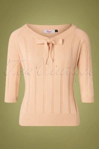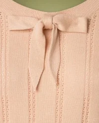 It’s easy to fall in love with this 50s Belle Bow Pointelle Top in Beige! The top features a beautiful round neckline with a playful bow and 3/4 sleeves, cute! Made of a lovely supple, stretchy, fine knit viscose and cotton blend in beige with a classic openwork pattern. A versatile top that every vintage lady should have in her wardrobe!