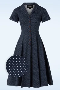 Dazzle them with dots in this Caterina Mini Polka Dot Swing Dress in Navy! A stunning shirt dress that isn’t only suited for a retro evening look,