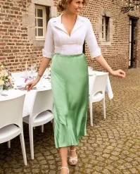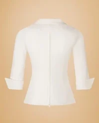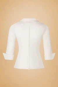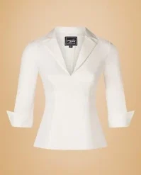 “Dress how you want to be addressed! ‘Boss Lady’ will do just fine!’ 😉 You are the one in charge when wearing this 50s Dianne Blouse in Crispy White! This season our talented in-house designers were inspired by the ambition and perseverance of our very own Boss Lady Angelique who makes all of her dreams come true… that’s what we call women empowerment! This slightly tailored, classy blouse flaunts a comfy fit, a pointy lapel collar and 3/4 sleeves with pointy turn-ups. Made of a sturdy, yet supple, ivory-white fabric with just a hint of stretch that is a dream to wear. Match Dianne with high waist trousers or a pencil skirt and high heels for that effortless glam look that Lauren Bacall was famous for. And let’s not forget one of her quotes: ”I am not a has-been. I am a will be!” And that’s the way it is, Hunnie 😉