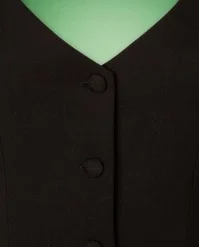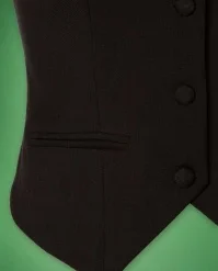 “Just give me coffee and watch me make it happen!” And you don’t need a 3-piece suit to do just that. 😉 Embrace your powerful and feminine side in this versatile 50s Dianne Waistcoat in Black! This autumn our talented in-house designers were inspired by the ambition and perseverance of our very own Boss Lady Angelique who makes all of her dreams come true… that’s what we call women empowerment! This sleeveless stunner flaunts 4 buttons, faux pockets and a typical buckle detail at the back. Made of a sturdy, yet supple, sateen-lined black fabric (barely stretches) that is a joy to wear. You can wear Dianne in
