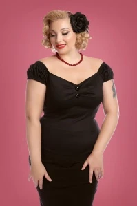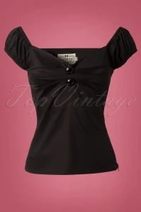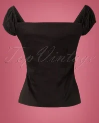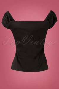 Hola señorita! The 50s Dolores Top in Black is truly a must-have!Top in carmen style, cute puffy sleeves which can be worn off-shoulder and pleats at the bust for a beautiful cleavage. Made from a black cotton blend with a light stretch for a lovely fit. The always oh so pretty Dolores!