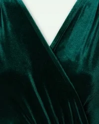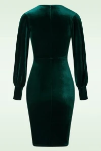 Vintage, versatile and very va-va-voom best describe this 50s Elena Velvet Pencil Dress in Green! Styled with a pleated surplice neckline, long puff sleeves with wide cuffs and a fitted skirt that hugs your curves and is super flattering. Made of a lovely supple and stretchy, soft, dark-green fabric with the look and feel of velvet that is comfy to wear. Ready to blow people away with Elena?