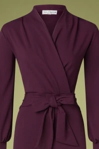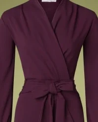 Be a power woman in this 50s Emmylou Jersey Crepe Jumpsuit in Wine! A timeless jumpsuit featuring a bodice flaunting a wrap neckline, long puff sleeves and fixed tie straps. She fits perfectly around the waist, while the flattering wide legs make your legs look endless. Made of a supple and stretchy, wine-red fabric that is a joy to wear. This iconic garment is the perfect choice for both work and parties… must-have! Â