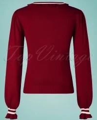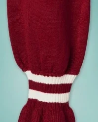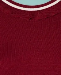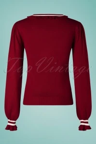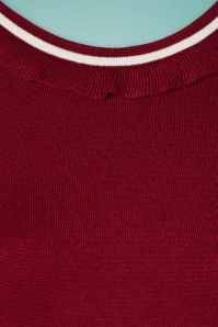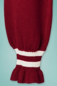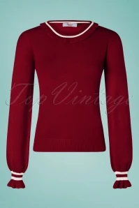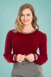 Wear this 50s Frill Me Puff Sleeve Jumper in Bordeaux and experience ”the thrill of the frill!” 😉 The white striped detailing, the round neckline framed with ruffles and long puff sleeves with ruffles make her a standout number! Made of a supple, stretchy and fine knit viscose blend in burgundy that is a joy to wear. If you want to experience the thrill of having this jumper in your wardrobe, you better order her now!