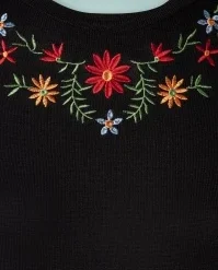 thin, fine knit and stretchy viscose blend in black adorned with colourful
