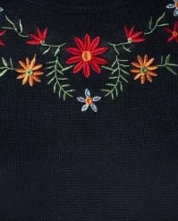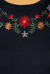 thin, fine knit and stretchy viscose blend in navy blue, adorned with colourful