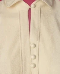 This 50s Margot Blouse in Antique White is a real classic! Styled with a cute Peter Pan collar, short puff sleeves and a row of buttons. You can either opt for a V-neckline or use the button at the collar to create a high neckline style. Made of a supple, crêpe-like fabric (doesn’t stretch) in ivory white that is a joy to wear. Pair with a pencil skirt or high waist trousers with wide legs for a classy fifties look!