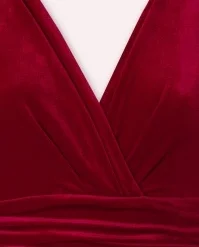 of a lovely supple, stretchy and soft velvet fabric in deep red for a curve-hugging