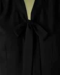 The combination possibilities are endless with this 50s Perfect Bow Blouse in Black! Dress it up or keep it classy… this beauty is a perfect match with everything! She features a V-neckline with fixed tie straps, a row of shiny buttons and 3/4 puff sleeves for an extra vintage feel. Breathtakingly beautiful and super comfy thanks to the supple, black fabric (doesn’t stretch!). The Perfect Bow Blouse, indeed!Â