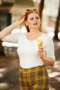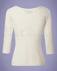 This 50s Pretty Illusion Top in Off White is one to fall in love with! No, this isn’t an illusion… this stunning top is a dream coming true! The top features a beautiful round neckline with fixed tie straps and 3/4 sleeves, cute! Made from a lovely supple, stretchy, fine knitted ivory white viscose blend that will keep its shape, even after a few washes. A versatile top which can’t be missed in every vintage lady’s wardrobe!