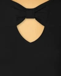 This gorgeous 50s Queen Bow Top in Black is the perfect addition to any wardrobe, whether you’re a Pin-Up Girl, Rockabella or Vintage Vixen! Flaunting a round neckline with a keyhole and bow detail and flattering 3/4 sleeves. Made of a lovely supple and stretchy cotton in black that will keep its shape, even after a few washes. L-O-V-E!