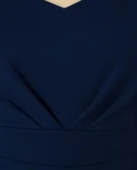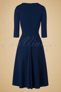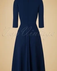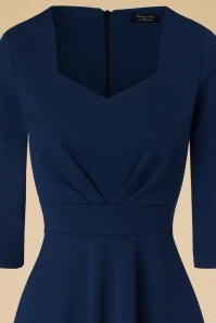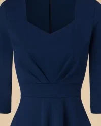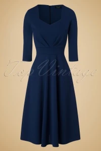 Feminine and flirty this 50s Ruby Swing Dress! Wow, such a stunner! This vintage inspired beauty features an elegant diamond shaped neckline, a broad waist band and flattering pleats that gracefully run across the bust. The semi-swing skirt in combination with the fitted top gives you that super feminine fifties silhouette. Made from a stretchy dark blue fabric that’s a joy to wear.Β This one will conquer your heart, and not only yours… π
