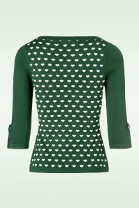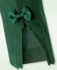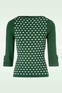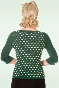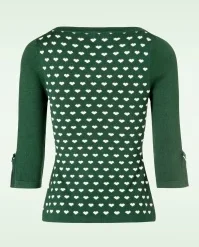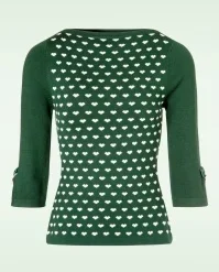 Elegant and cute this 60s Addicted Charming Heart Sweater! Simple and yet so elegant due to the adorable detailing 😉 The top features a beautiful slash neckline and flattering 3/4 sleeves finished off with slits and little fixed bows, só cute! Made from a lovely supple, stretchy, fine knitted dark green viscose blend with a cream coloured hearts pattern that will keep its shape, even after a few washes. All you need is love… and this top. The name says it all; we’re addicted!