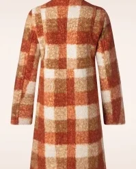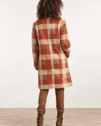 your favourite new transitional coat for autumn! She is made of a super-soft, checkered bouclé fabric in sand and orange. She is also fully lined in a satiny fabric.