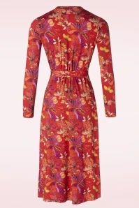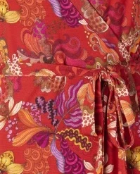 New autumn/winter collection ~ Wrap me up, baby! This flattering wrap beauty is styled with ¾ sleeves and tie straps and is made of a supple and stretchy, deep-red EcoVero-viscose blend that is a dream to wear and flaunts a groovy floral print.