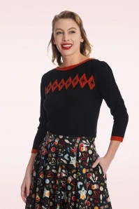 Why settle for regular stars when you can have atomic ones? 😉 This jumper is made of a lovely supple and stretchy, black viscose blend flaunting a red star design.