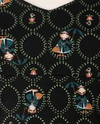 of a super comfy and stretchy, black organic cotton blend, featuring a playful print.