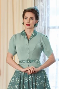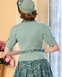 Bring a touch of feminine charm to any occasion with Daria! This short blazer with a detachable collar is inspired by the flawless style of none other than Queen Elizabeth II. Made of a firm but airy, mint-blue fabric that is lined for an extra comfy fit.