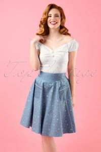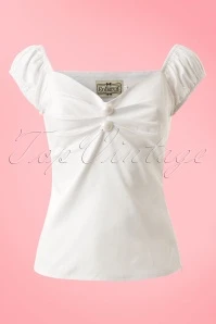 Hola señorita! The 50s Dolores Top in White is truly a must-have! Top in carmen style, cute puffy sleeves which can be worn off-shoulder and pleats at the bust for a beautiful cleavage. Made from a white cotton blend with a light stretch for a lovely fit. The always oh so pretty Dolores!