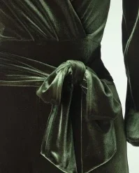 New autumn/winter collection ~ ”There’s something magical about velvet.” A timeless jumpsuit featuring a bodice flaunting a wrap neckline, long puff sleeves and fixed tie straps. She fits perfectly around the waist, while the flattering wide legs make your legs look endless. Made of a soft, supple and stretchy, olive-green velour fabric that is a joy to wear. This iconic garment is the perfect choice for both work and parties… must-have!