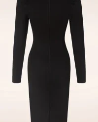 The little black dress: the femme fatale’s secret weapon of style! 😉 This pencil beauty is made of a firm, yet supple and stretchy, black fabric for a curve-hugging, yet flattering fit.