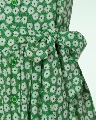 With this Finola Daisies Dress in Green you are all set for the warmer weather! This cheerful dress flaunts a round neckline, a row of shiny buttons and a tie belt that accentuates your waist. From the waist down she flows into a flattering semi-swing skirt with ruffles. Made of supple and breezy, green 100% viscose (doesn’t stretch) scattered with dainty white daisies. Order this cutie now and she’ll be on her way to you in no time 😉 Â