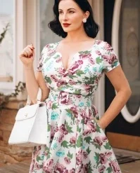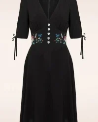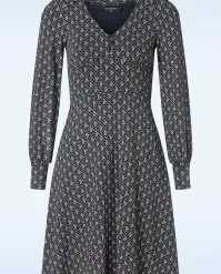 New autumn/winter collection ~ This Flower Souvenir Dress in Blue flaunts a V-neckline and from the flattering wide waist band she flows into a swing skirt that gracefully moves along with every step you take! Made of a supple and stretchy, blue viscose blend strewn with dainty flowers.