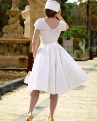 Do you say ‘YES’ to this dress? She is inspired by the flawless style of none other than Queen Elizabeth II and feels lovely lightweight thanks to the breezy, ivory-white, floral broderie anglaise fabric in 100% cotton (doesn’t stretch).