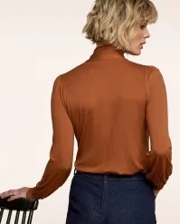 Fun fact: The pussy-bow resembled a tie and depicted a powerful image but with a soft and feminine look! 😉 This is your chance to make a fashion statement with this Amalia blouse, which is made of a supple and stretchy, cognac-hued EcoVero viscose blend that is a dream to wear. Â