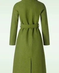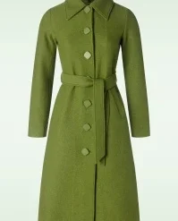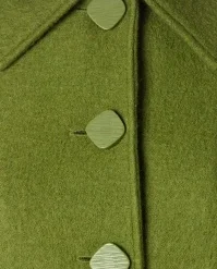 Meet me under the falling leaves! This long coat is a real beauty, but she will also keep you nice and warm because she is made of heavy quality wool (doesn’t stretch) in olive green and is fully lined with a satiny fabric.