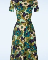 This Betty Party Dress Selena in Deep Blue has us dreaming of summer! Flaunting a round neckline, short sleeves, a flattering keyhole at the back and a colourful floral design, she is sure to make your heart skip a beat. The detachable tie belt at the waist creates a gorgeous silhouette. Made of a supple and stretchy, deep-blue EcoVero viscose blend in a fabulous retro floral design. You are to fall in love, we certainly already have… 😉