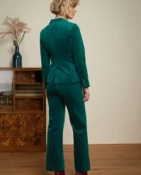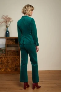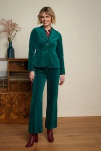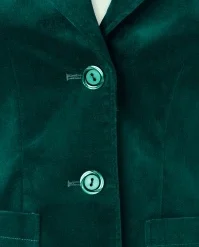 ”All any girl needs, at any time in history, is velvet!” This stunning blazer is made of a firm, yet soft, velvety cotton blend in dark green that is a joy to wear. Â