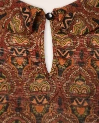 Life won’t sparkle unless you do! Dita is made of a thin and stretchy fabric in rusty brown for breezy comfort, flaunting a boho print and woven with subtle glitter!