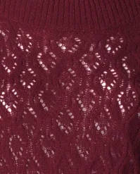 This cutie is a real must-have for the upcoming season! Erin is made of a fine knit, soft, supple and stretchy acrylic blend with a touch of wool/alpaca in wine red, styled with a classic openwork pattern.Â