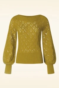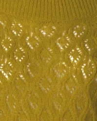 This cutie is a real must-have for the upcoming season! Erin is made of a fine knit, soft, supple and stretchy acrylic blend with a touch of wool/alpaca in mustard yellow, styled with a classic openwork pattern.