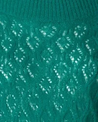 This cutie is a real must-have for the upcoming season! Erin is made of a fine knit, soft, supple and stretchy acrylic blend with a touch of wool/alpaca in turquoise, styled with a classic openwork pattern.Â