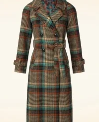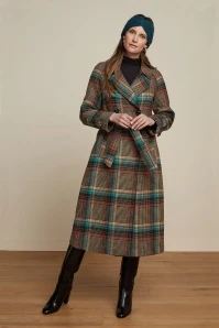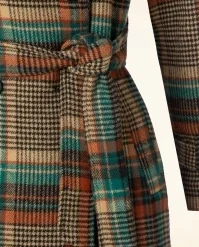 A new winter coat? Check! 😉 This long coat is a real beauty, but she will also keep you nice and warm because she is made of a heavy quality fabric with wool (doesn’t stretch) in a check pattern in rusty brown and blue and is fully lined with a satiny fabric.
