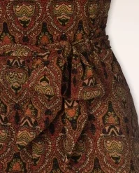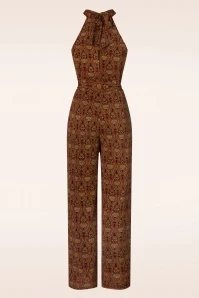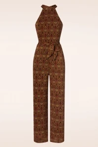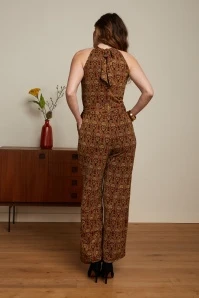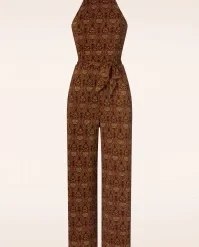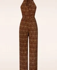 Jumpsuits: the go-to outfit for those days when you want to look fabulous without putting in too much effort! 😉 Marty is made of a supple and stretchy, brown fabric woven with metallic yarn and flaunting a fabulous retro print.