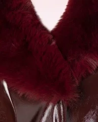 What’s in a name? Yes, you’re destined to outshine everyone this autumn by simply wearing this fabulous coat! Made of firm and shiny, burgundy-red faux leather flaunting a striking faux fur collar and big faux fur cuffs.Â