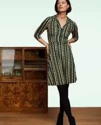 Bring back the ‘MOD-ern’ fashionista! This retro A-line beauty is made of a supple and stretchy, dark-green EcoVero viscose blend that is a joy to wear and flaunts a statement retro design.