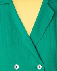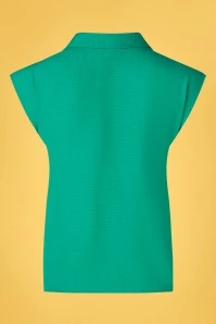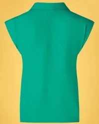 ”Waistcoat meets blouse!” Create a classy, yet playful look with this Sandy Nicole Blouse in Amber Green! She has the looks of a waistcoat and is finished with a pointy collar, a V-neckline, flattering pleats at the shoulders, little slits and a double row of buttons. Made of a supple, teal-green rayon/(EcoVero) viscose blend (doesn’t stretch) that is lovely breezy to wear and features a woven pattern. Comfy and versatile… what more could you wish for?