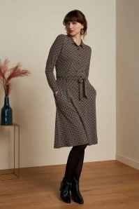 Comfy and cute WITH handy side pockets, just the way we like it! 😉 Made of a supple and stretchy, brownish-red (EcoVero) viscose blend that is a joy to wear and flaunts a fabulous retro design. Â