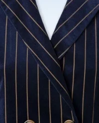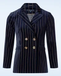 This blazer is sure to earn her stripes! 😉 Made of a firm, midnight-blue cotton blend (barely stretches) with the look and feel of crushed velvet and flaunting a gold-toned stripe design.
