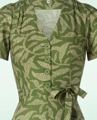 Add some vintage flair to your summer wardrobe with this Magnolia Celebes Dress in Green! She features a V-neckline, short puff sleeves and a row of large buttons. The tie belt accentuates your waist, creating a super feminine silhouette. Made of supple and breezy viscose (doesn’t stretch) flaunting a playful print. “I feel pretty, oh, so pretty, I feel pretty and witty and bright!”