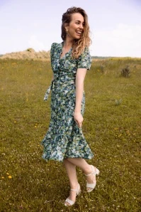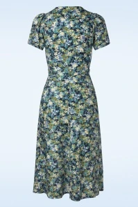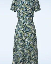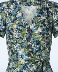 Add a touch of vintage flair to your summer wardrobe with this Magnolia My Fair Lady Dress in Blue! She features a V-neckline, short puff sleeves and a row of large buttons. The tie belt accentuates your waist, creating a super feminine silhouette. Made of a supple and breezy, dark-blue viscose (doesn’t stretch) with a dainty, painterly floral design. “I feel pretty, oh, so pretty, I feel pretty and witty and bright!”