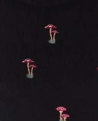 Get ready to rock the fungi fashion! Made of a lovely supple and stretchy, black viscose blend beautifully embroidered with mushrooms… it’s a ‘spore-tacular’ choice!