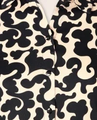 Go get your groove on in this Selda Blouse! She is made of a supple, soft and stretchy, partially recycled fabric that flaunts a retro design in cream and black. Â