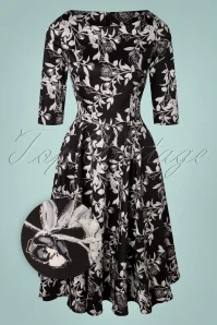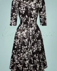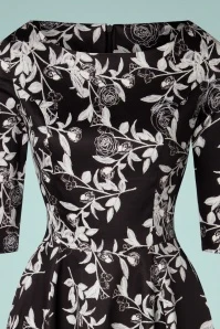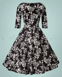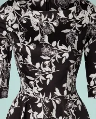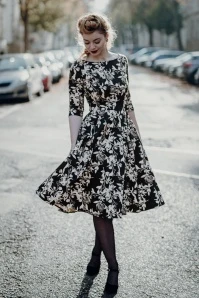 Create a classy autumn look with this 50s Adriana Roses Long Sleeve Swing Dress in Black! The fitted bodice features a gorgeous bateau neckline, 3/4 sleeves and from the waist down she runs into a flowy swing skirt for a super feminine silhouette. Made of a sturdy, yet supple, black cotton blend that has a light stretch and features a painterly rose print. You’re sure to fall in love, we certainly already have… 😉Â