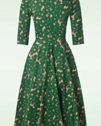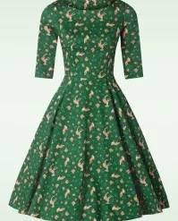 New autumn/winter collection ~ Create a classy autumn look with this 50s Adriana Long Sleeve Swing Dress in Dark Green, available exclusively at TopVintage! The fitted bodice features a gorgeous bateau neckline, 3/4 sleeves and from the waist down she runs into a flowy swing skirt for a super feminine silhouette. Made of a firm, yet supple, green cotton blend that has a light stretch and features a gorgeous autumnal animal print. You’re sure to fall in love, we certainly already have… 😉